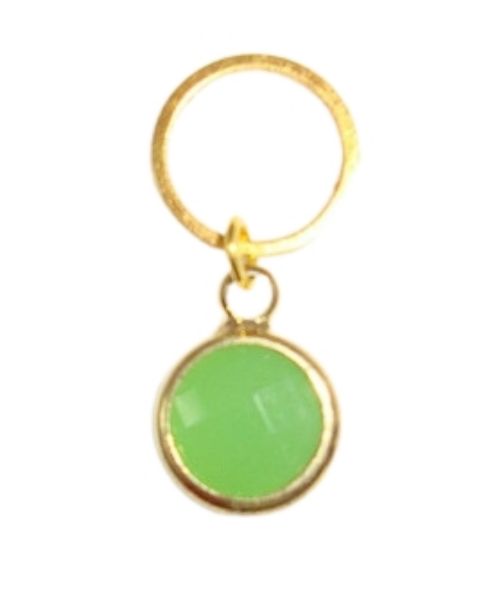 Forgyldt maskemarkør med smukt matgrønt glasvedhæng, der giver ekstra bling til dit strikketøj.