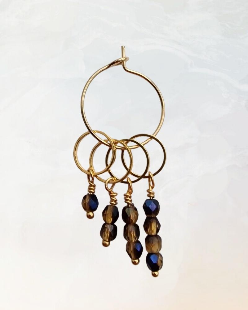 Talmarkører med facetterede perler i en særlig changerende blå og gyldenbrun farve.