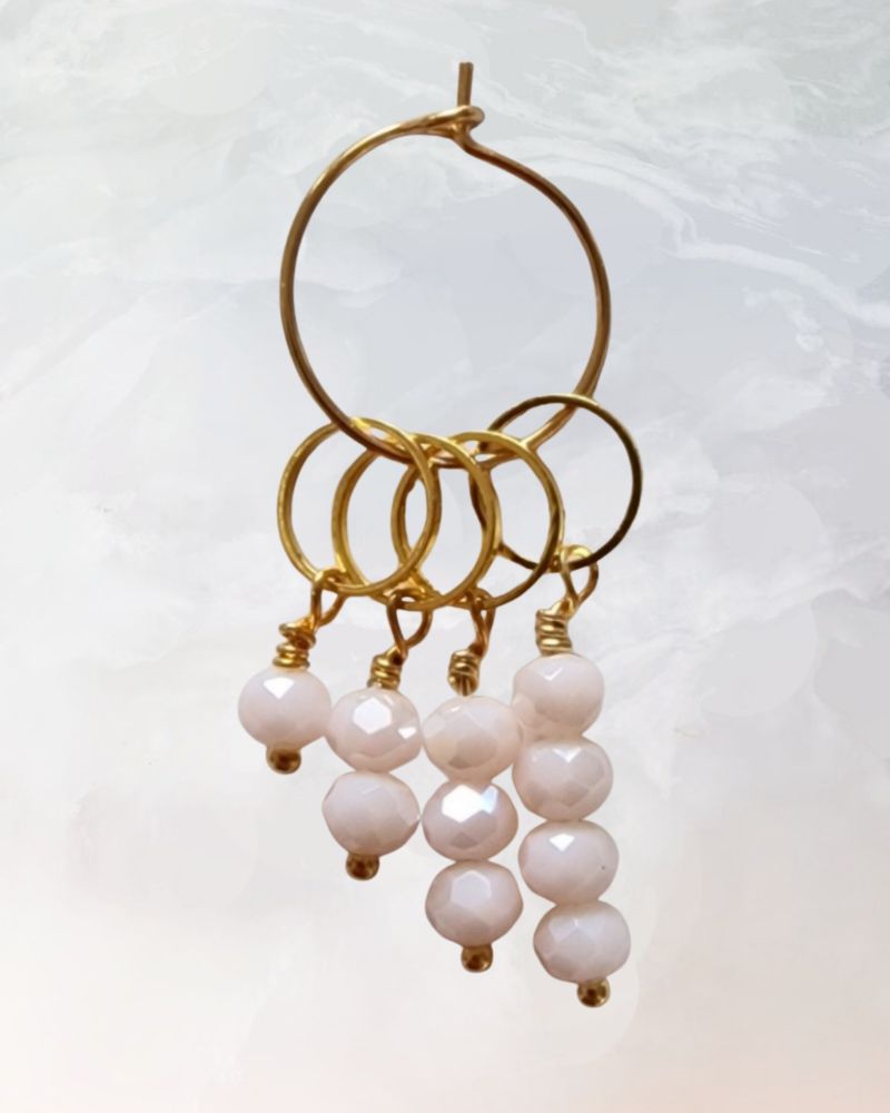 Maskemarkører med facetterede perler i en sart lys pudderfarve.